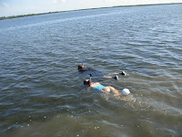 On Saturday I had the privledge of participating in the first annual Pine Island Scallop Search put on my colleague Joy Hazell, the Lee County Sea Grant Extension Agent and the Sannibel Captiva Conservation Foundation. The event is a resource‐monitoring program where volunteers snorkel, looking for scallops in select areas within Pine Island Sound. The purpose of this program is to monitor and document the health and status of the bay scallop population, and is modeled off of the successful Great Bay Scallop Search conducted in Tampa Bay since 1993. One hundred and twenty volunteers participated in the event and 335 scallops were counted!!!